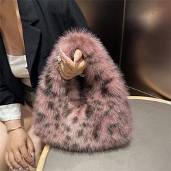 फ्लुफी प्लश महिलाओं के हैंडबैग के लिए तेंदुए के फर बैग नई सर्दियों के गर्म नरम faus क्रॉबॉडी बैग क्लच