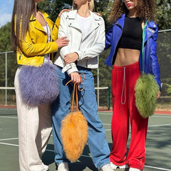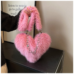 नकली फर महिलाओं के प्यार के कंधे से कंधा मिलाकर लड़कियों की चेन क्रॉसबॉडी बैग सर्दियों में गर्म महिला फ्फी क्लच पर्स हैंडबैग